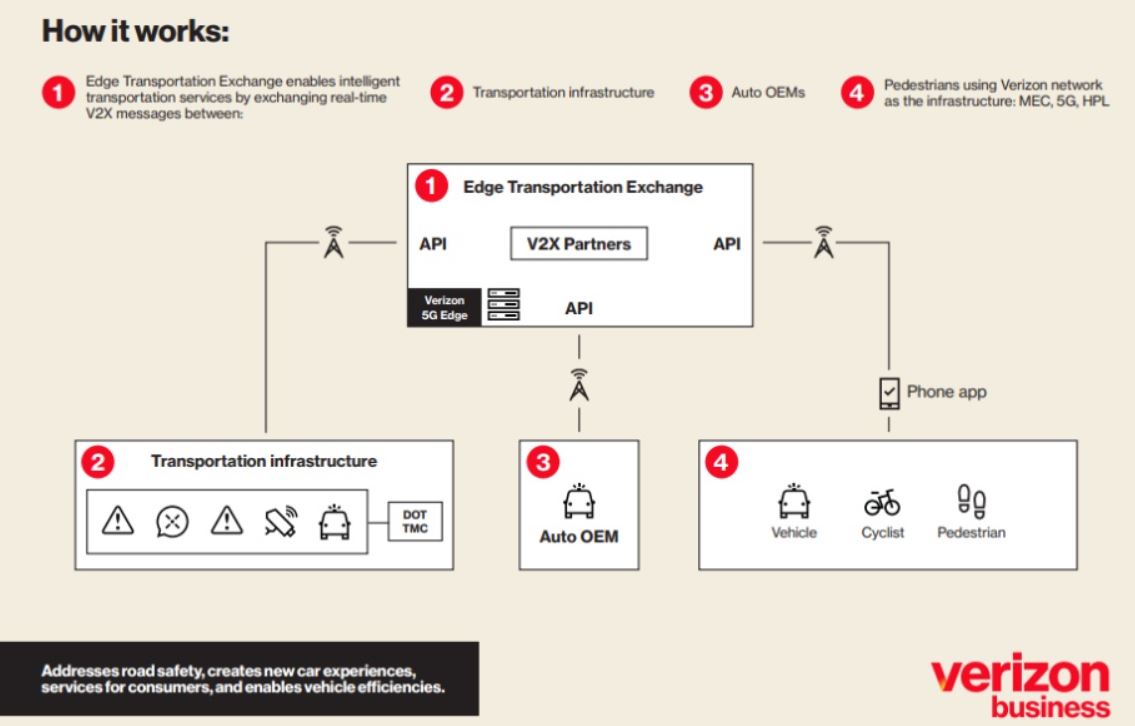 Both Verizon Business VZ 0.00%↑ and Qualcomm QCOM 0.00%↑ made recent announcements to ramp up their growing forays into vehicle-to-everything (V2X) markets. Verizon, which commercially launched Edge Transportation Exchange, a mobile-network V2X communication platform built on its 5G and LTE infrastructure alongside low-latency mobile edge computing and geolocation technology.